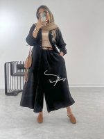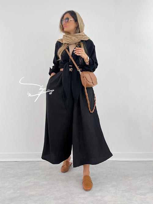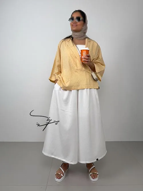 برای ست کردن دامن شلواری سوئیت مطابق تصاویر محصول میتوانید شومیز “نودو”، “جاسمین” یا “پیچ” و کراپ کت “کابوی” یا “بوف” و یا پانچ “آلفا” را تهیه کنید. همچنین برای کامل شدن استایل خود میتوانید “کالج بارسا”، “اسلیپر هرمس”، “صندل ناپل” و یا “صندل بابت نیل پلنگی” از برند نوبا را خریداری نمایید.
