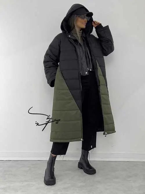 سبک و شیک: پافرهای بلند با طراحی ساده و در عین حال شیک، گزینهای عالی برای بانوانی هستند که به دنبال ظاهری مرتب و مدرن در روزهای سرد زمستان هستند. دو رنگ بودن این پافر به شما این امکان را میدهد که به راحتی آن را با استایلهای مختلف ترکیب کنید.